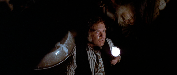Coupled with the bare knowledge about the film, I sort of took the moment to be Kevin Conway trying to coax a just-discovered freak from the darkness of the funhouse. As much as I love The Funhouse, I've always been kind of disappointed that The Monster didn't just show up out of nowhere in the funhouse inexplicably, because nothing is ever scarier than the unexplained.
